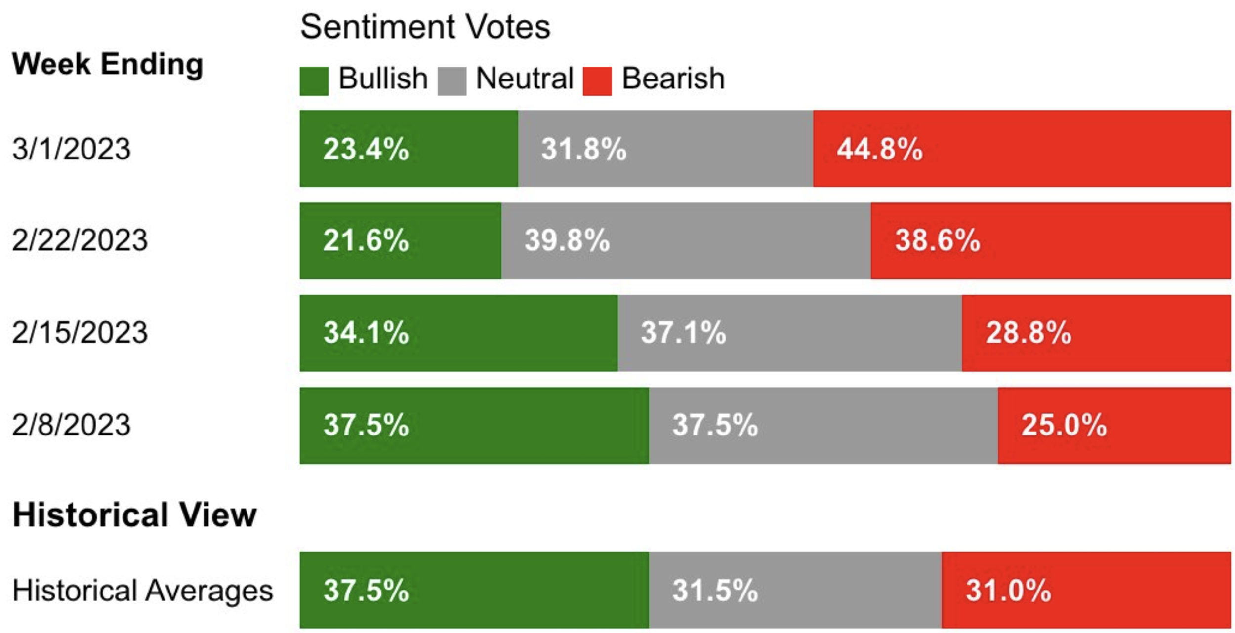 Positioning was quite extreme and bearish at the end of 2022 and we saw a wicked ramp in January. Since that time, AAII sentiment has ripped back with stock prices going up but with the correction, sentiment has fallen back down to lows. Perhaps everyone is correct but after 30 years of investing, I’m a bit wired to be more positive when the masses are very negative and extreme. Timing is everything though.