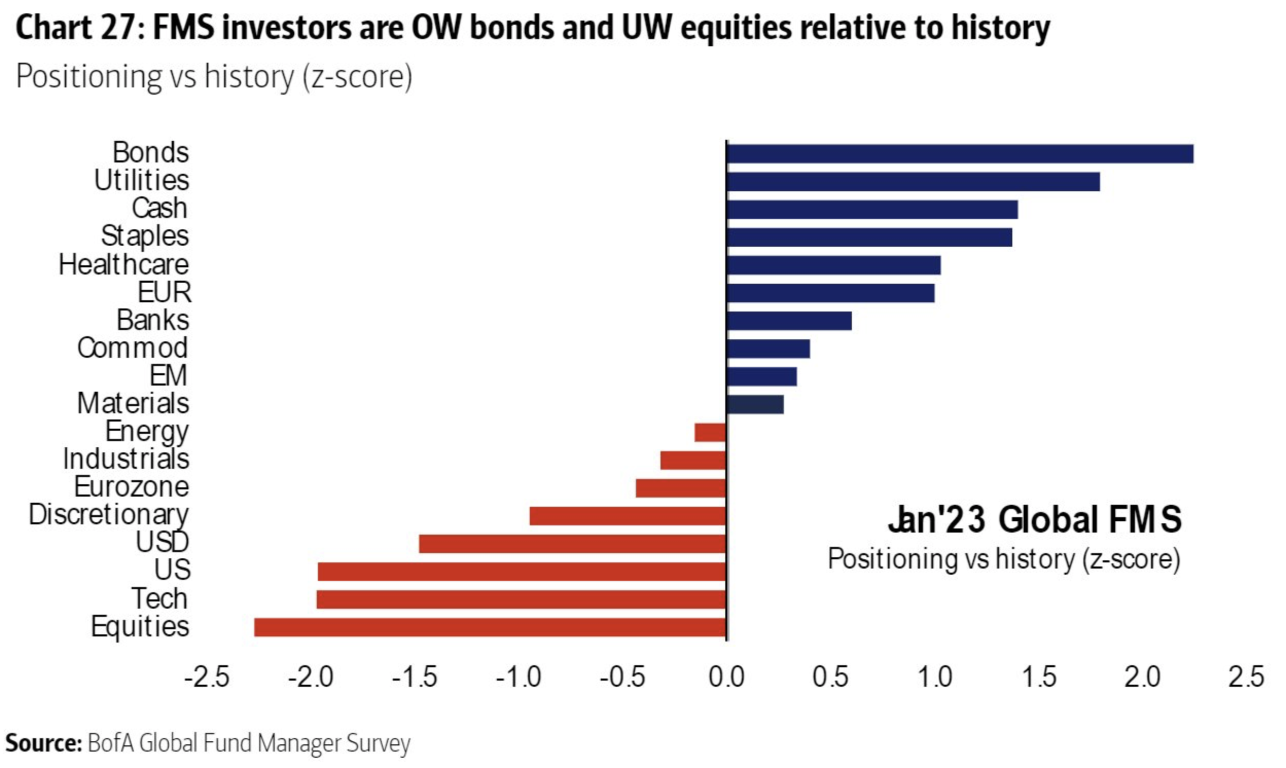 Here’s the February look for institutional money managers, again VERY bearish stocks, Tech in particular as rates have risen back to highs and markets have gotten soft again.