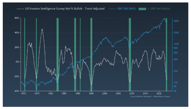 Everybody is already bearish, this chart goes back to 1970 folks. Bearish sentiment like we have now is a very rare thing and has always been a wonderful contrarian signal at some point. I guess it all depends on the Fed and getting to the place they feel is warranted. A “halting of rate hikes and sitting tight” message is a catalyst.