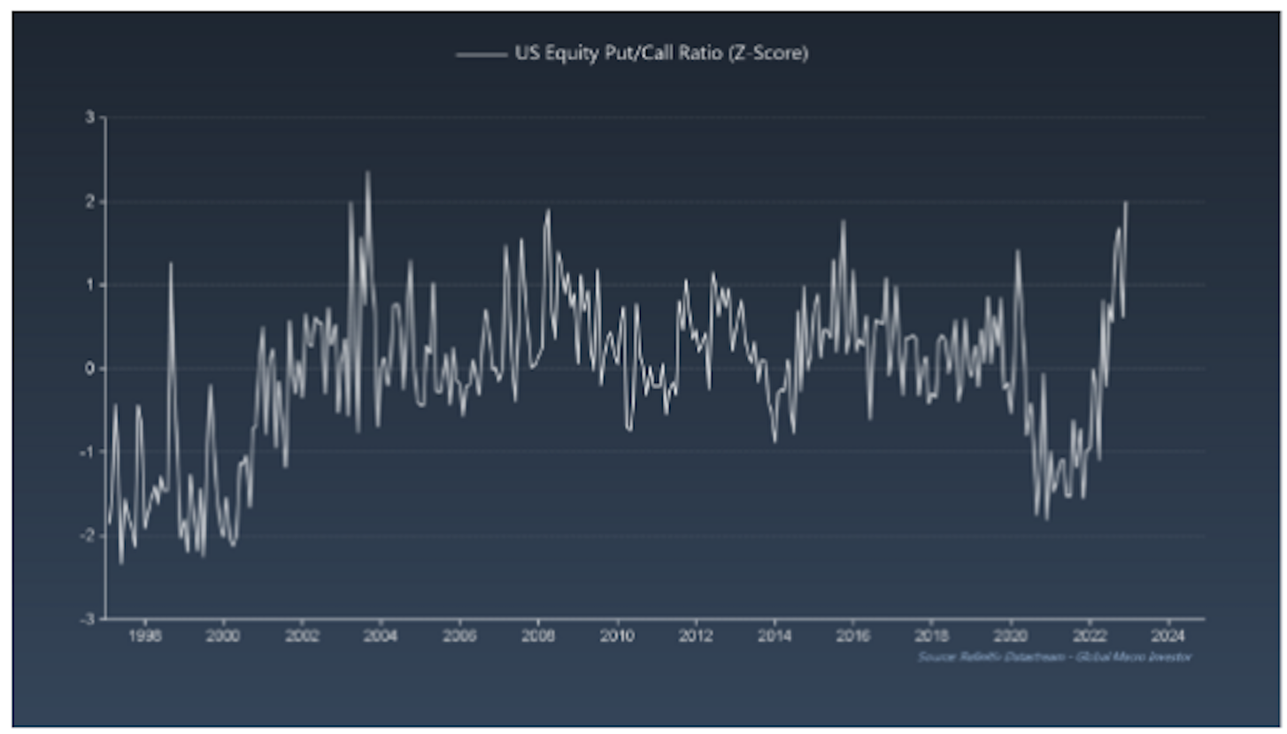 Whether its a hedge or an outright bearish bet, the US equity put/call ratio recently reached a 20-year high as investors scramble to accumulate downside protection. This chart is less compelling to me because we saw similar action in the fall of 2008 and those investors were spot-on with that bet. But generally, these extremes tend to be contrarian signals.