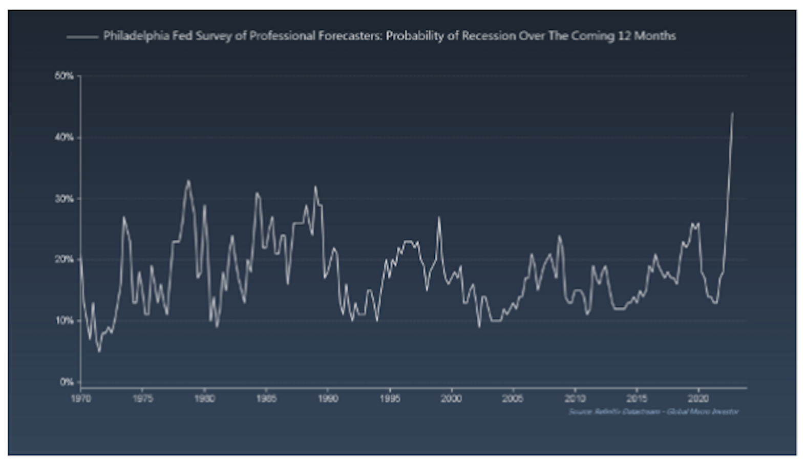 The Philly Fed Survey: Probability of recession in the forward 12 months. THE most anticipated recession ever.