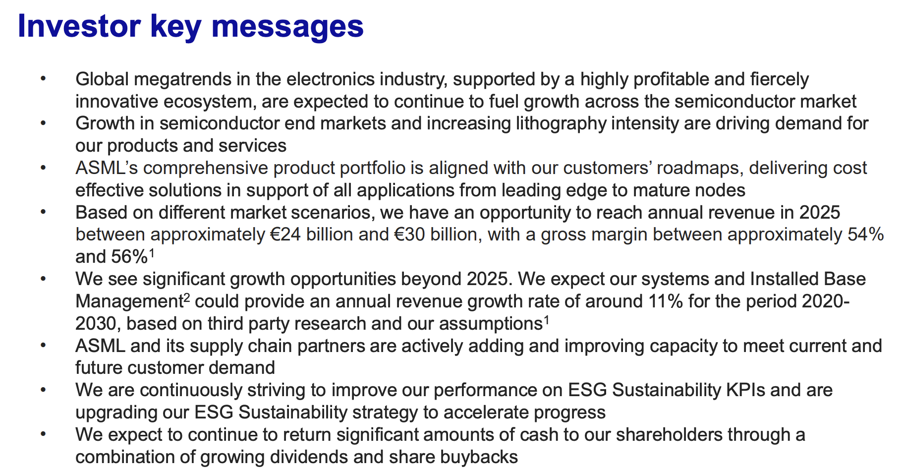 ASML had just over $18b in revenues in 2021 and they project to be at $30B+ by 2025 - the stock should grow with the revenue and earnings ramps over time.