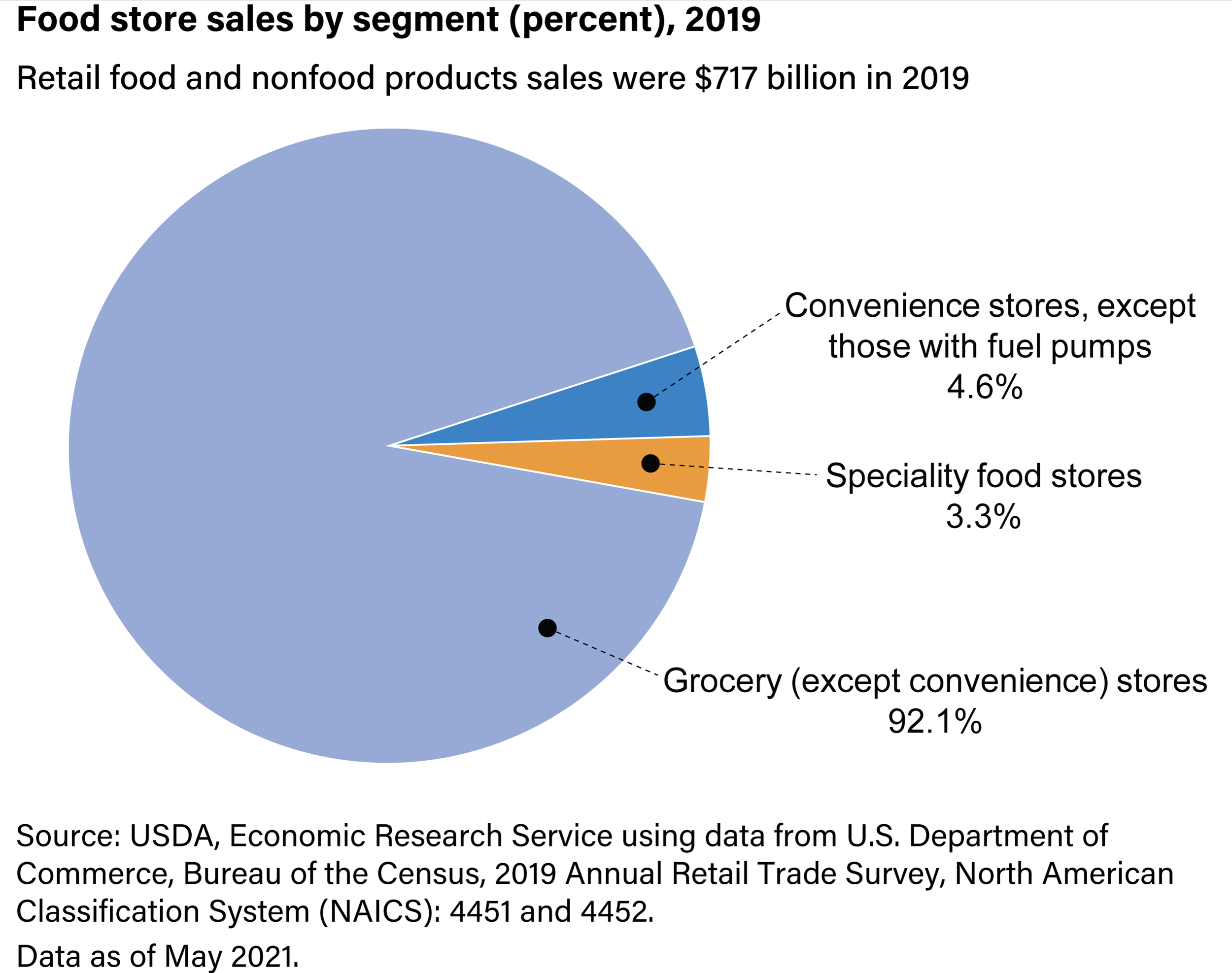 As the image below highlights, the convenience & specialty food stores only accounts for roughly 8-10% of the total.