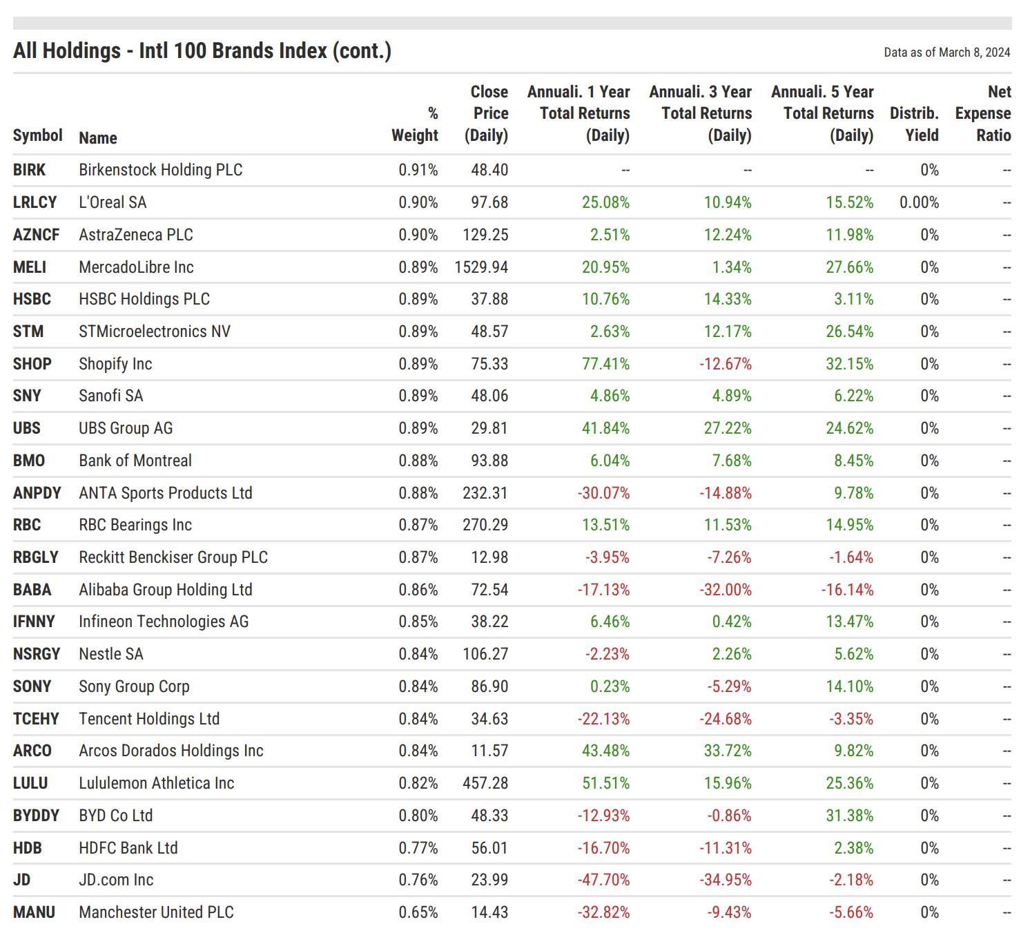 Note: This is the 2024 Top 100 International Brands Index & a more Focused, Active Portfolio called the Timeless 20 International Brands over the last 12 months. The index focuses on leading brands across important B2C and B2B categories including those deemed vital to the consumption supply chain. This is for illustrative purposes only.