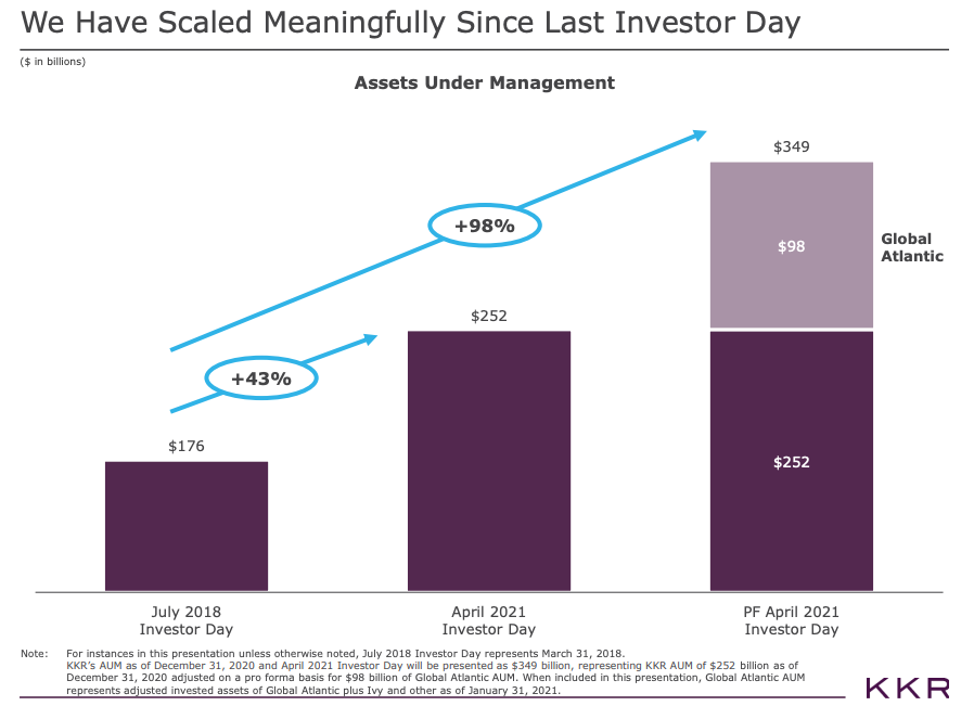 “Started in 1976. From the ipo on July 15, 2010, with year end AUM of ~$61B in assets, KKR stock has returned ~897% versus the S&P 500 return of ~400% as of February 15, 2022 when KKR had total AUM of $441B. And they are just getting started from an asset raising and fee revenue perspective.”